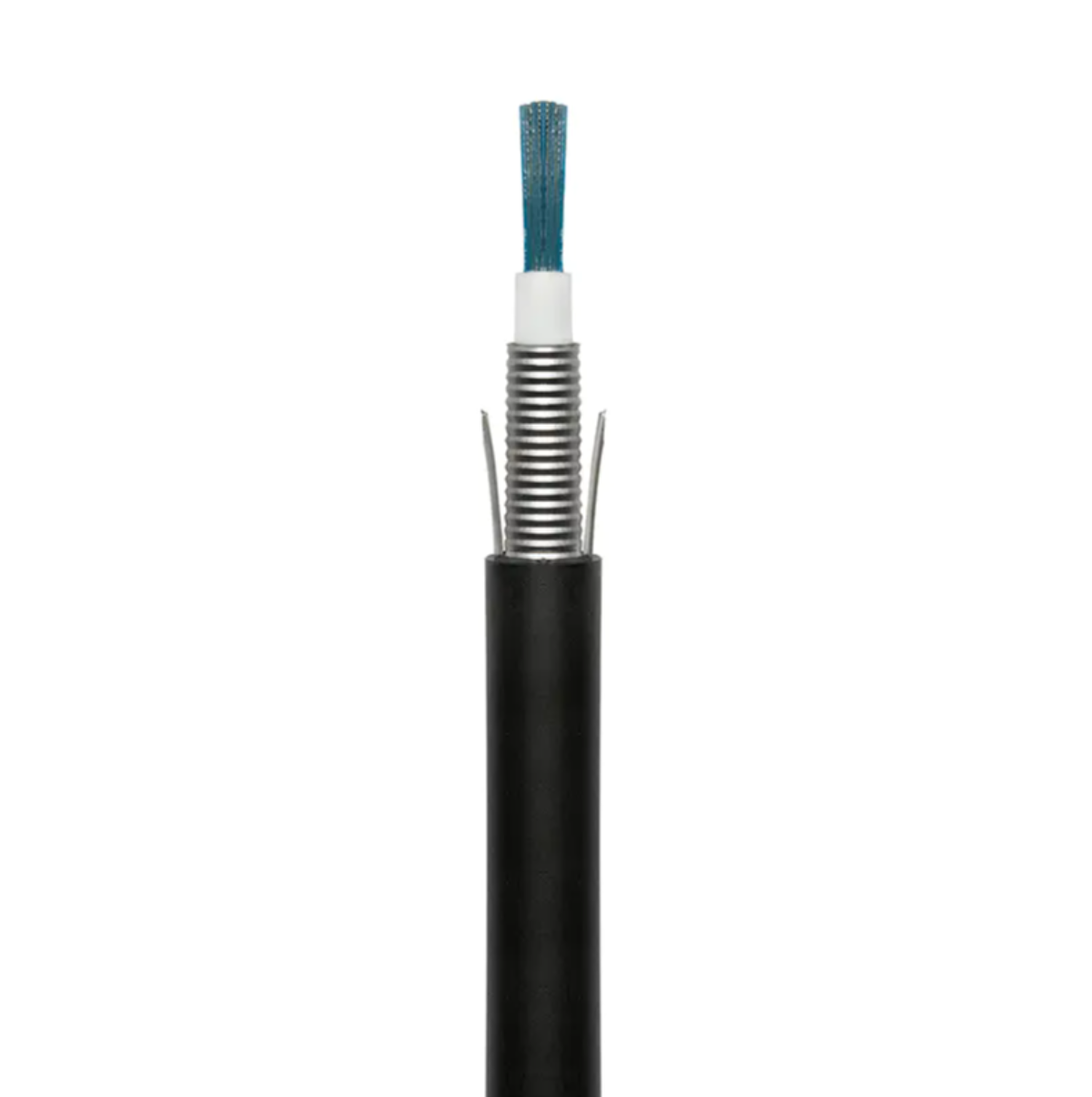 Memerlukan keupayaan kalis air, kalis UV dan kalis tikus. Biasanya menggunakan a struktur terkandas tiub longgar diisi dengan gel penyekat air.