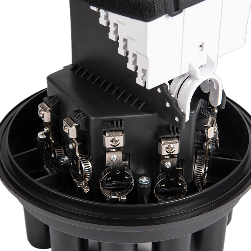 Penutupan serat gentian optik GSGSC109 menggunakan peranti pengikat yang selamat, seperti tali leher kabel hitam yang ditunjukkan, untuk memastikan penutupan mengekalkan meterai yang ketat. Ini menghalang sebarang bahan cemar daripada memasuki dan mengekalkan integriti sendi. Tali kabel menyediakan lapisan keselamatan tambahan, memastikan penutupan tetap ada di tempat walaupun dalam keadaan yang teruk.